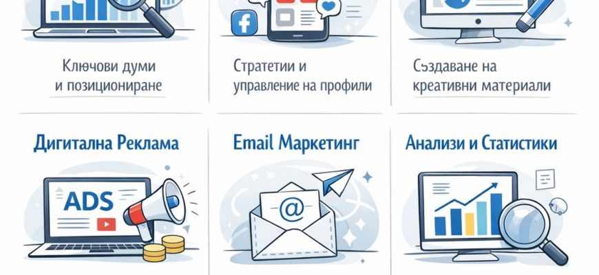 Дигиталният маркетинг включва всички маркетингови усилия, които използват електронни устройства или интернет. Това включва оптимизация за търсачки (SEO), социални медии, имейл маркетинг, платена реклама (PPC) и много други. Основната цел е да се достигне до целевата аудитория чрез различни онлайн канали и да се увеличи ангажираността и конверсиите.